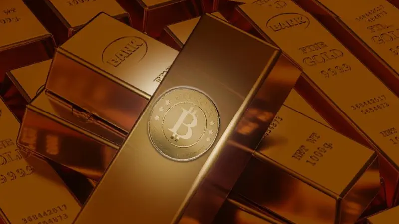 Lingots d'or avec un logo de cryptomonnaie(© Shutterstock)