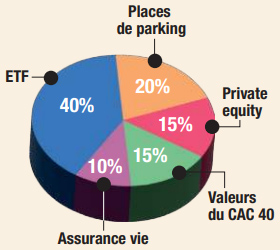 Le temps est votre allié pour bâtir votre patrimoine et prendre quelques risques. Une fois votre épargne de précaution constituée et l’achat de votre résidence principale sur les rails, orientez votre épargne disponible sur des actifs à fort potentiel : actions, ETF ou private equity (70 % dans l’allocation ci-contre).