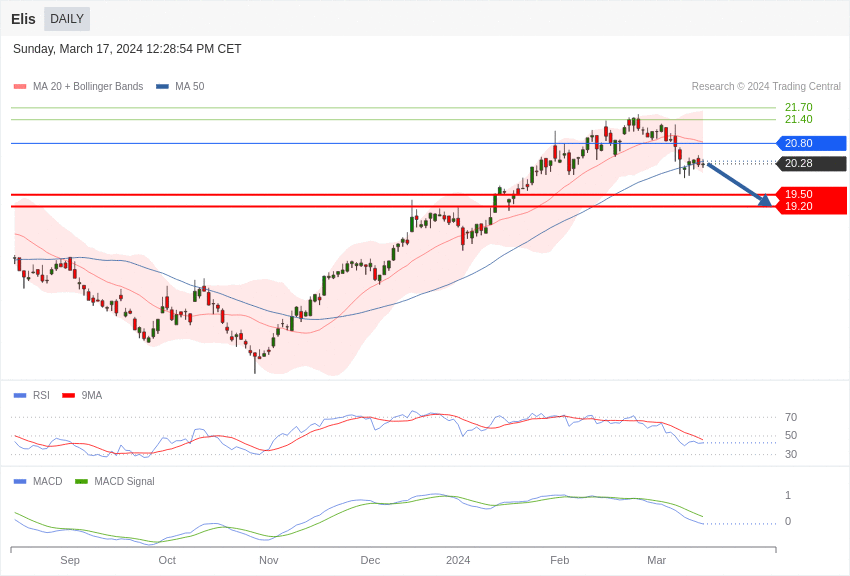 La configuration de l’action Elis est négative sous 20,80 euros.
