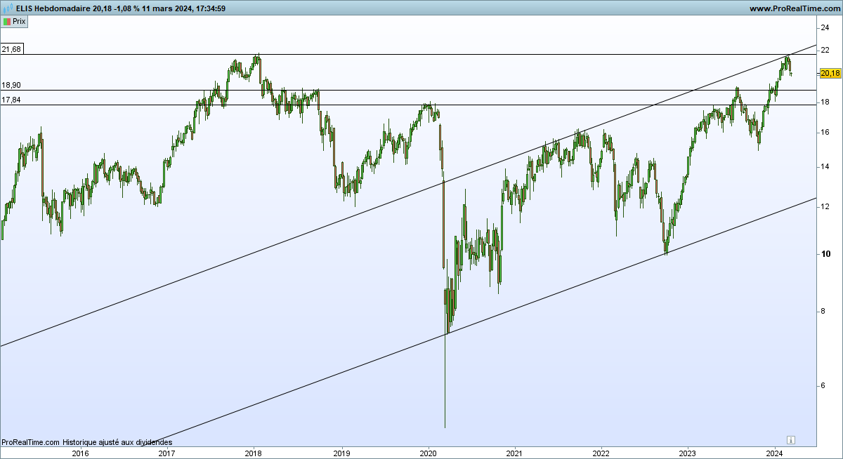 Le titre obtient un rating d’attractivité boursière de 5,5 sur 10 délivré par Equity GPS, dont 3,4 sur 10 pour ses ratios de valorisation et 7,7 sur 10 pour ses perspectives de profit. Il présente une “tendance haussière forte” selon Phiadvisor Valquant, avec un “momentum de court terme” et un “momentum de long terme” à 100 %. La société a publié ses résultats annuels le 7 mars. L’action a progressé de 22% depuis un an, de 45% en cinq ans et de 56% depuis son entrée en Bourse en février 2015 à 13 euros (hors dividendes).